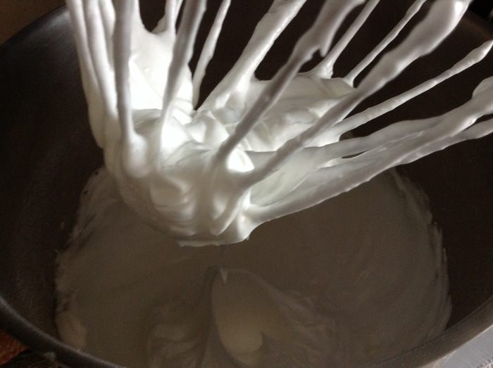 Взбить белки на максимальной скорости до плотной, густой пены.