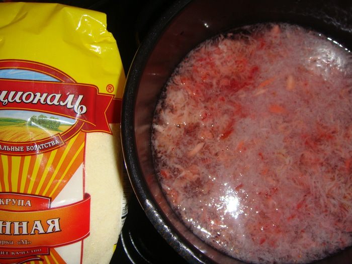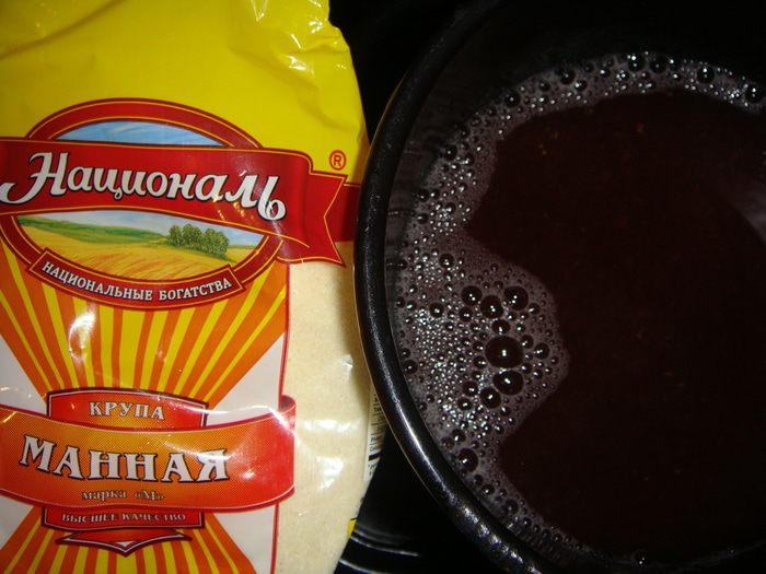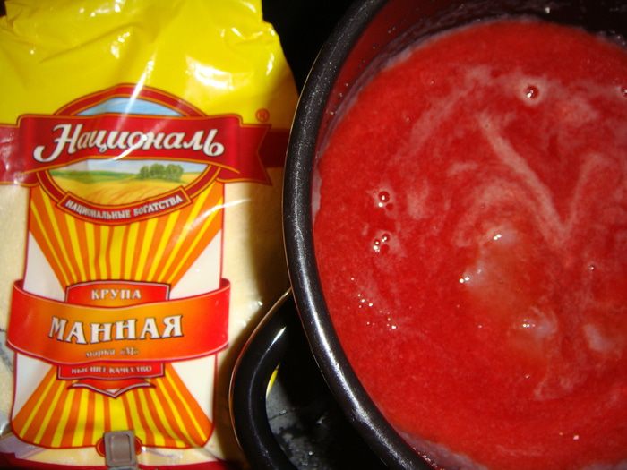 Кастрюльку с процеженным отваром поставить на огонь. Тонкой струйкой всыпать манную крупу ТМ «Националь» и варить, постоянно помешивая, в течение 5-ти минут. Остудить.