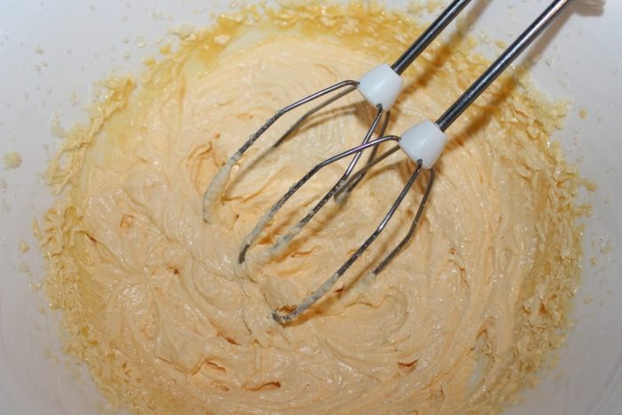 Отдельно взбить охлажденные сливки. Желатин замочить на 15 минут в небольшом количестве воды, затем нагреть до полного растворения. НЕ КИПЯТИТЬ!!! Соединить обе массы, добавить желатин и аккуратно перемешать.