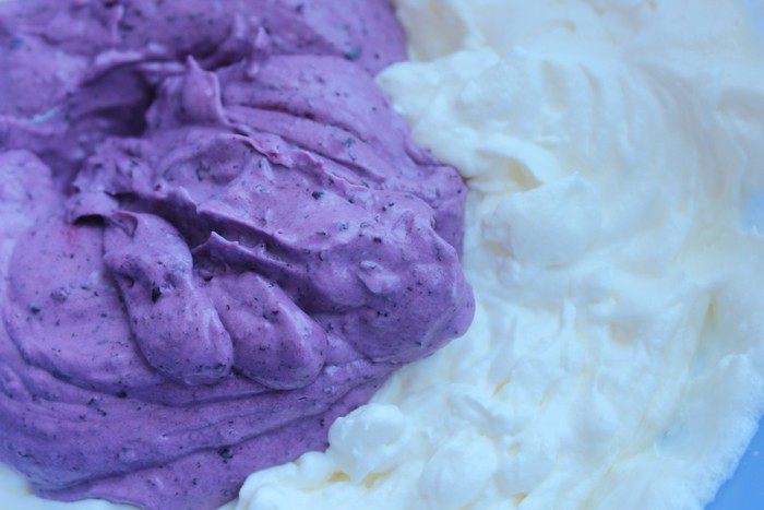 Черничное пюре взбить с маскарпоне.