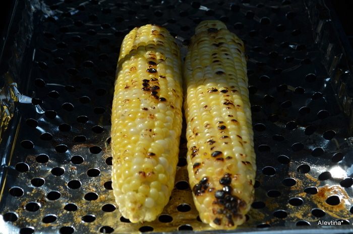 Кукурузу очищенную отгрилить примерно 10 мин.
