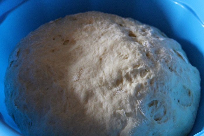 Через час тесто должно увеличиться в 2,5 раза. Обминаем его и оставляем еще на 30 минут.