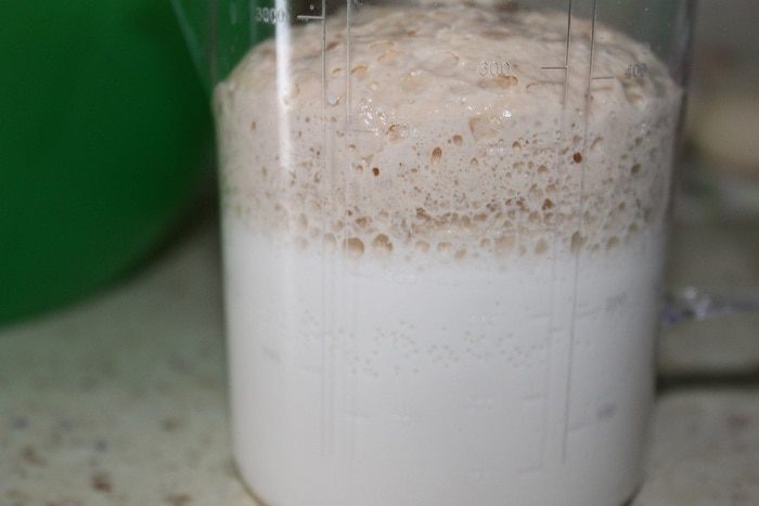 Сначала сделаем опару. Для этого, смешиваем в стакане теплую воду и теплое молоко, добавляем сахар и дрожжи, хорошо все размешиваем. И оставляем в теплом месте на 20 минут, до образования пышной шапочки.