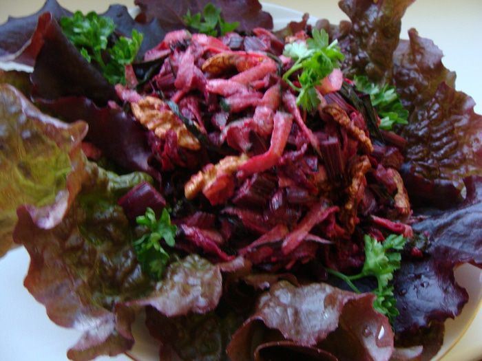 Этот салатик готовила для себя на ужин. Он относится к категории полезно и вкусно. Сытость ему придают грецкие орехи и сметанная заправка, а пикантность - чеснок и другие специи. Отлично подойдет для тех, кто следит за своим здоровьем.