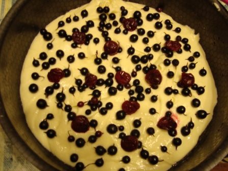 В отдельной посудине смешать оставшийся творог с 1 яйцом, мукой и сахаром. Перемешать, слепить комочек. И от комка отщипывать кусочки и выкладывать поверх пирога.
