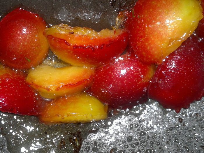 Быстро обжарим две - три сливы на оливковом масле.