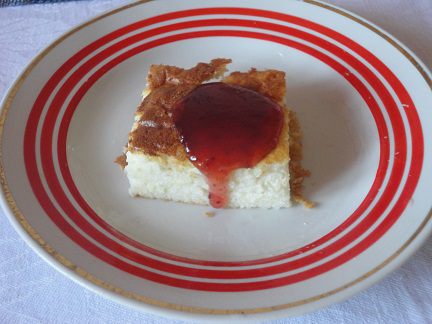 1. Манку с молоком смешать и дать постоять минут 10, чтобы крупа набухла. Форму смазать маслом и посыпать сухарями или манной крупой.