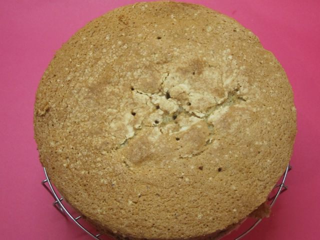 Остывший бисквит разрезать на 3 коржа.