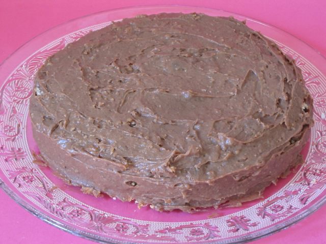Промазать остывшим заварным кремом. Промазать и бока торта.
