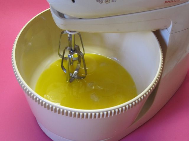 Отделить желтки от белков. Желтки выложить в миксер.