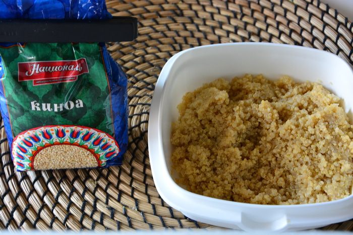 Отварить киноа ТМ «Националь» согласно инструкции на упаковке. У меня вышло 180 г каши.