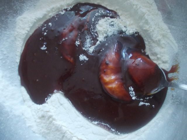 Когда остынет,вводим в просеянную муку и перемешиваем до однородности.
