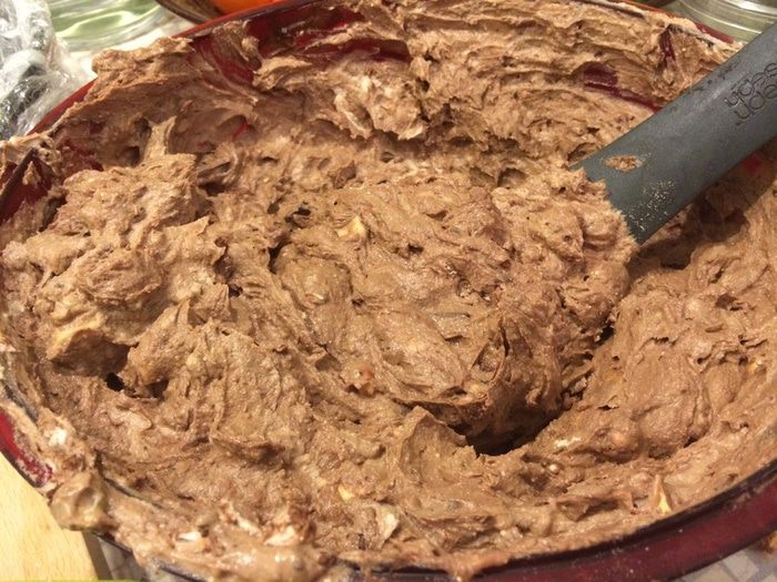 4) Хорошее какао ( конечно не 100 г :) пара ложек) или Шоколад (растопленный сам по себе или с добавлением сливок/сливочного масла. Шоколад любой любой, стоит ли говорить, что горький лучше) или густой сваренный из пакета качественный горячий шоколад (конечно дать остыть), самое простое - Шоколадная паста из банки или какао родное сгущеное из жестянки;
