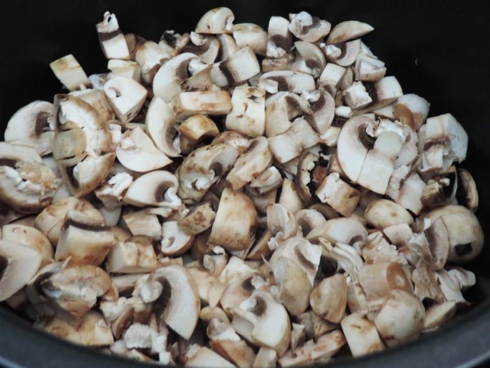 В последнюю очередь нарезаем кубиками кабачок. Мне понадобился один среднего размера. Если он у вас перезревший, предварительно удалите семена и очистите его от кожицы. Кабачок тоже отправляем в мультиварку. Слегка солим, добавляем приправы. Я написала, какие использовала. Можете добавить свои любимые.