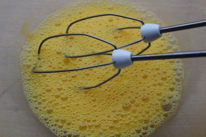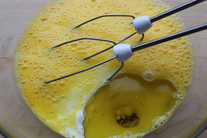 Яйца взбить в пену.