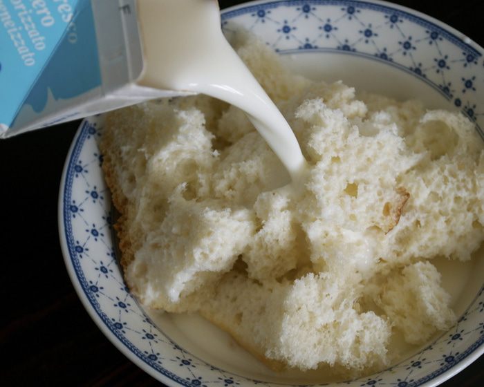 Мякоть белого хлеба замочить в молоке (приблизительно 1 стакан).