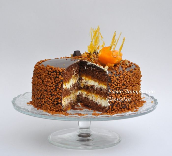 Готовим глазурь. Желатин замочить в 30 граммах воды и дать набухнуть. Все составляющие, кроме желатина и воды смешать в маленькой кастрюльке и поставить на огонь. Прогревать глазурь, все время мешая до растворения в ней сахара. Готовую глазурь немного остудить. Набухший желатин подогреть в микроволновке, не кипятить. Желатин добавить к теплой глазури, перемешать.