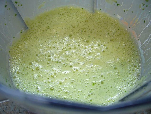 Шпинат вымыть, высушить, сложить в блендер, залить кефиром, взбить.