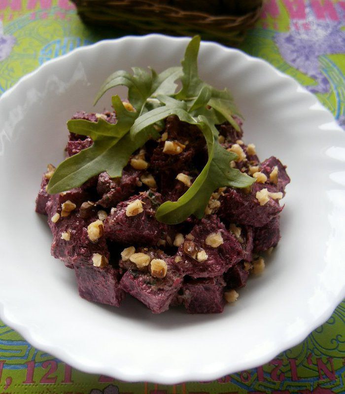 Салат из запеченной свеклы с песто из руколы и грецких орехов