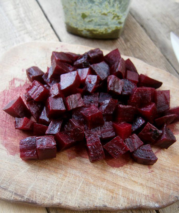 Нарезанную свеклу соединить с песто и хорошо перемешать.