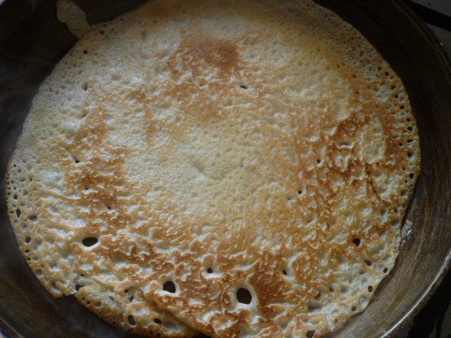 Итак, блины вы можете взять любые. Я же делаю на закваске. Закваску можно брать как ржаную, так и пшеничную. Но на пике активности.