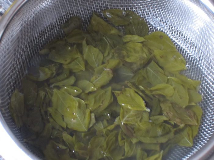 Базилик промыть и выложить на бумажное полотенце.