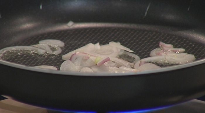 Разогреть в сковороде со съемной ручкой оливковое масло и обжарить лук.