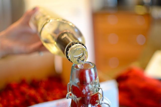 Вишню промыть, удалить хвостики, просушить и уложить плотно в банку. Косточки удалять нет необходимости-именно вишневая косточка придает напитку вкус и аромат. Залить водкой и поставить на подоконник, закрыть крышкой и забыть на 3 недели.
