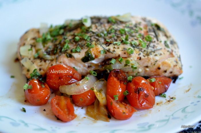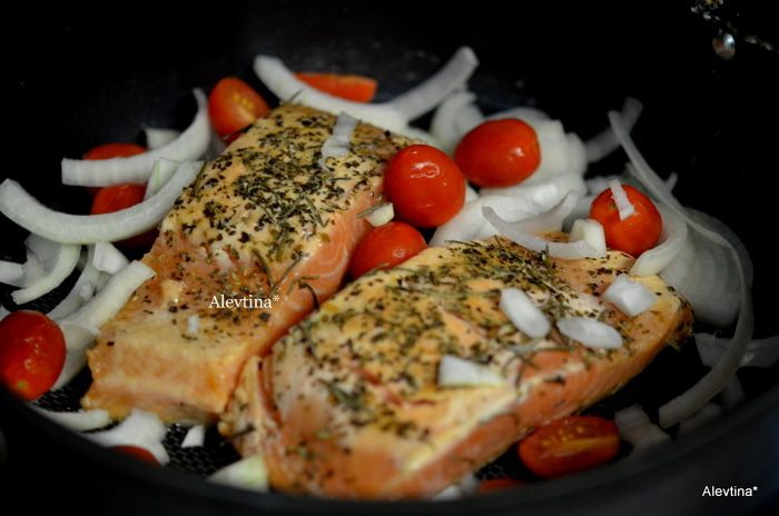 Для любителей красной рыбы замечательный обед или ужин с овощами. Рыбу желательно использовать филе с кожицей на спинке.