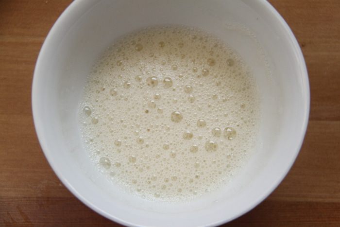 Белок взбить вилкой с водой и ванильным экстрактом.