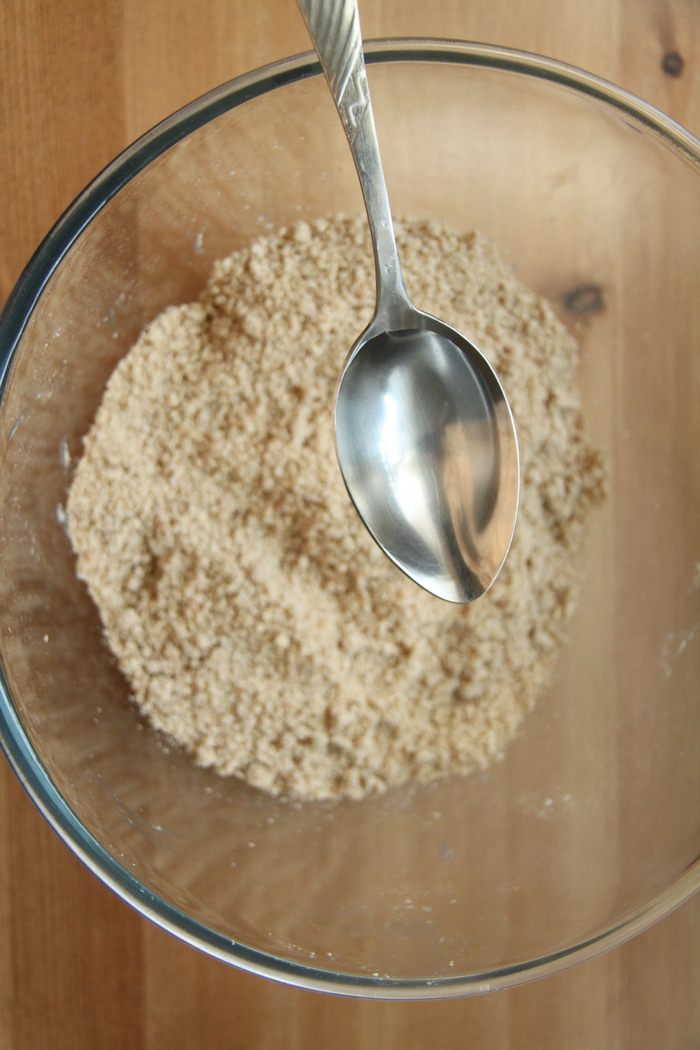 Соединить мучную смесь и масляную, растереть в крошку. Добавить пару столовых ложек воды.
