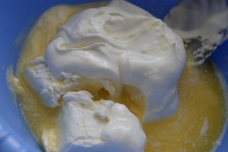 Постепенно добавлять муку, смешанную с разрыхлителем.