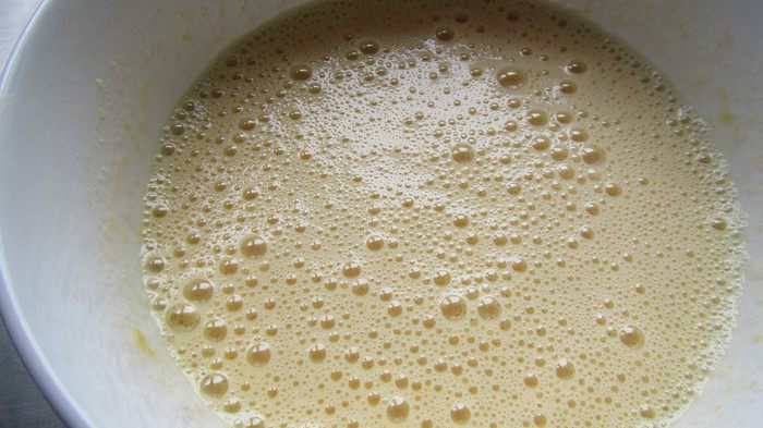 Добавляем молоко, растопленное сливочное масло и ванильный экстракт. Все еще немного взбиваем.