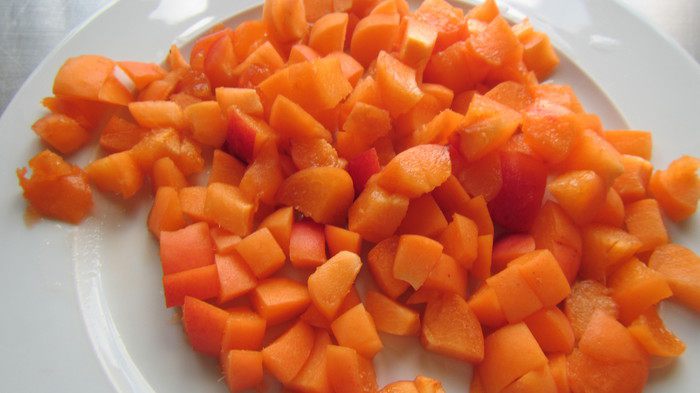 Абрикосы режем мелко.