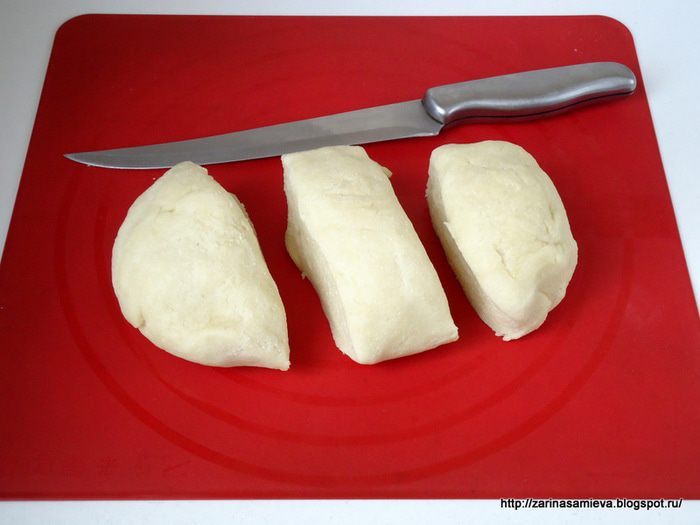 Разделить тесто на две или три части.