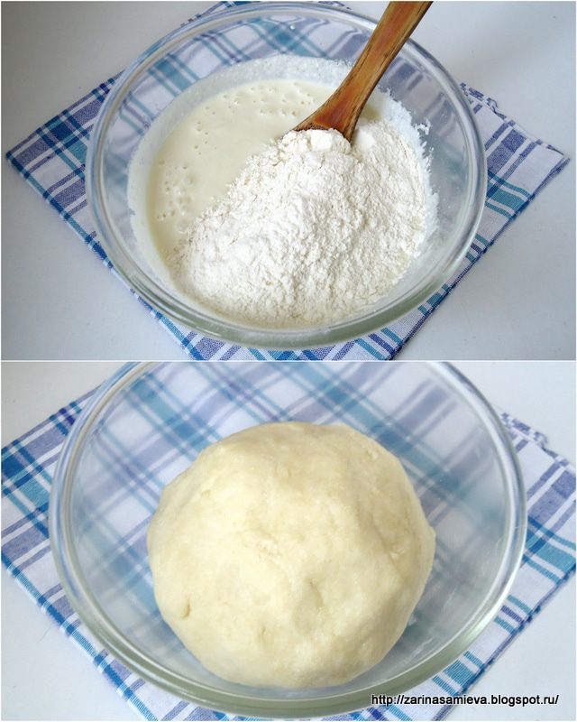 Муку просеять вместе с разрыхлителем и замесить мягкое тесто.