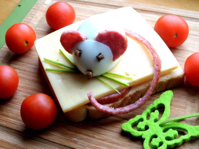 Если поставить бутерброд (без "мышки"!) в микроволновку,то можно подать в горячем виде))) Приятного аппетита Вашим деткам!!!!!