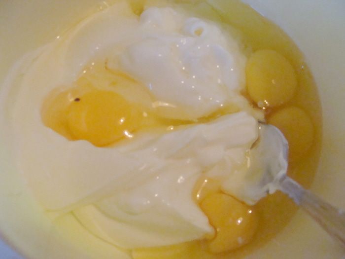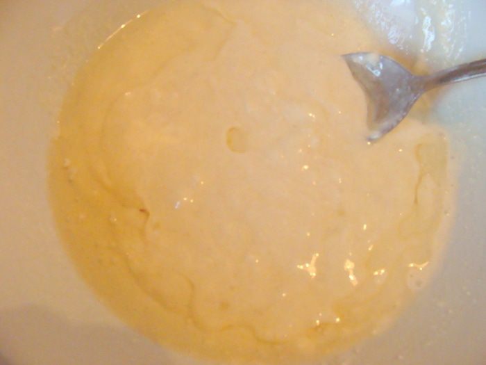 Размешать сначала все ложкой,
