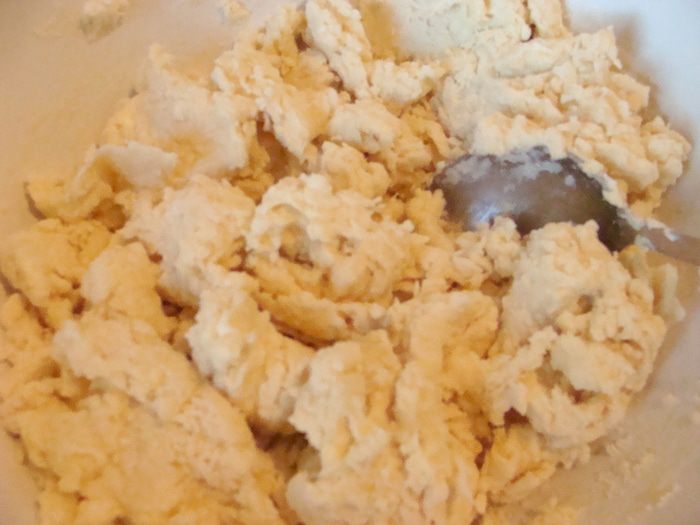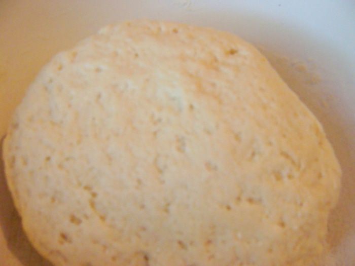 Затем замесить тесто. Оно получается очень нежное, влажное и пористое, но к рукам не прилипает.