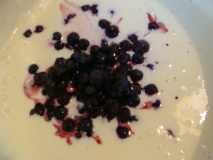 Добавить чернику. Перемешать смесь уже ложкой.
