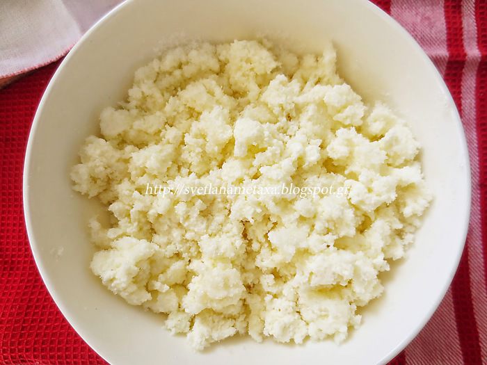 На лепешку, выкладываем творог, много не надо, примерно как у меня.