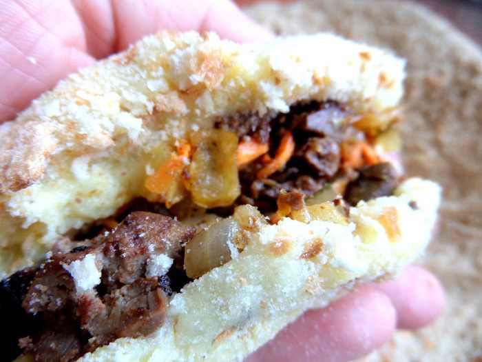 Опять я с печёнкой))), на этот раз "спрятала" её в начинку! Обваляв зразы в сухарях, получилось что-то похожее на картофельные пирожки ...,румяные и вкусные!!!