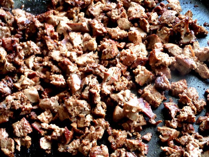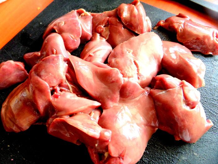 Печень промыть, просушить, обрезать жилки.
