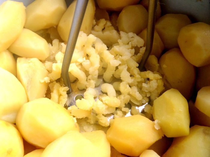 Картофель отварить с солью, слить воду.