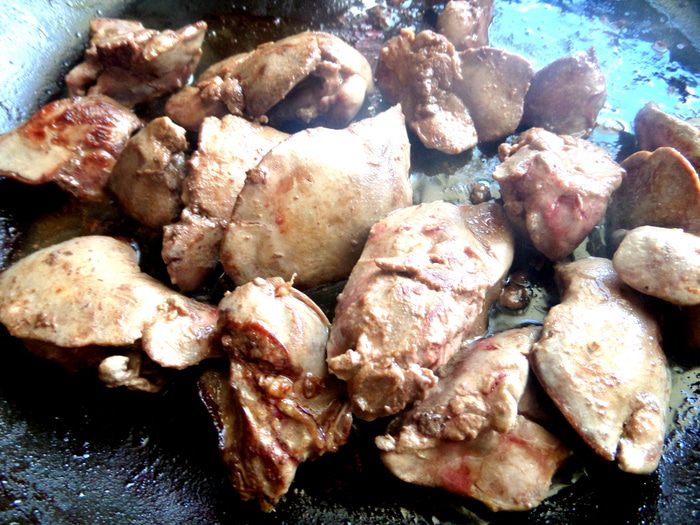 Добавляем печёнку, пробуем на соль.