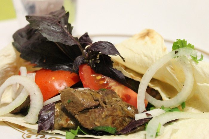 В 5 км от нашего города, есть армянский поселок. Там очень много разных кафе. И в каждом из них, готовят мой любимый тжвжик.Это так вкуусно, что невозможно оторваться. Говяжья печень в жировой сетке, жареная на мангале и завернутая в лаваш с луком и зеленью. Я решила приготовить в духовке, получилось не менее вкусно.)) Единственный нюанс, когда нужно переворачивать печень, в форме образуется очень много жидкости, ее нужно слить и опять отправить в духовку. Угощайтесь, друзья!))