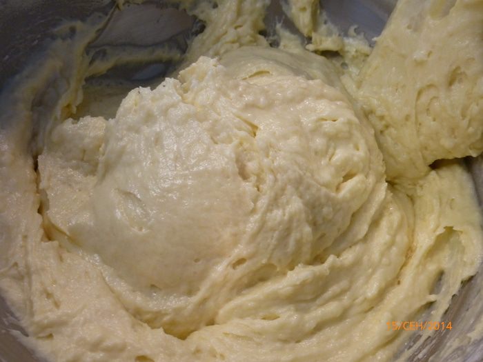 Аккуратно все соединяем. Тесто получается густое.