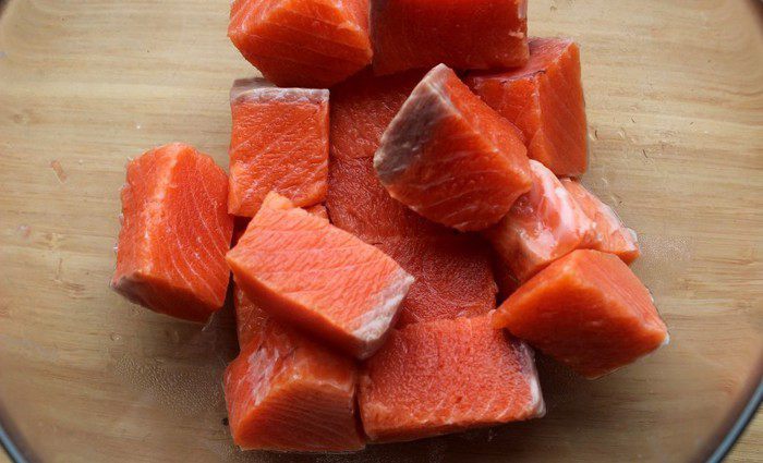 Рыбное филе нарезать небольшими кусочками.