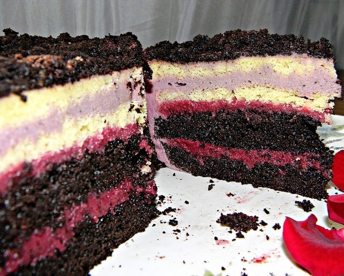 Готовый корж должен постоять минут 10 в форме. Когда бисквит остынет можно разрезать на нужное количество частей.