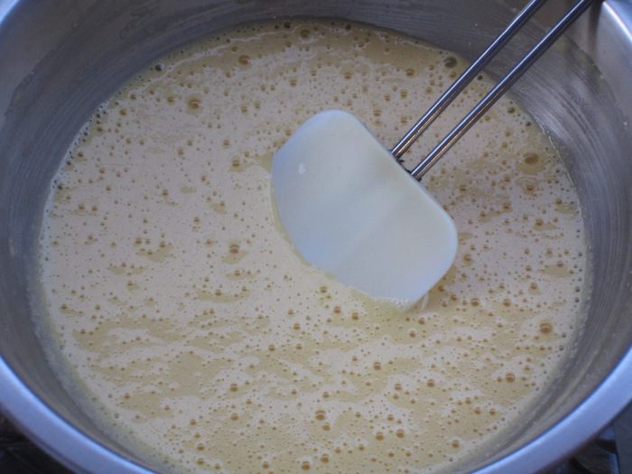 Заливка: Половину молока перелить в кастрюлю,добавить сахар,ликёр и нагреть на слабом огне до полного растворения сахара.Снять с огня,влить оставшееся молоко,охладить.